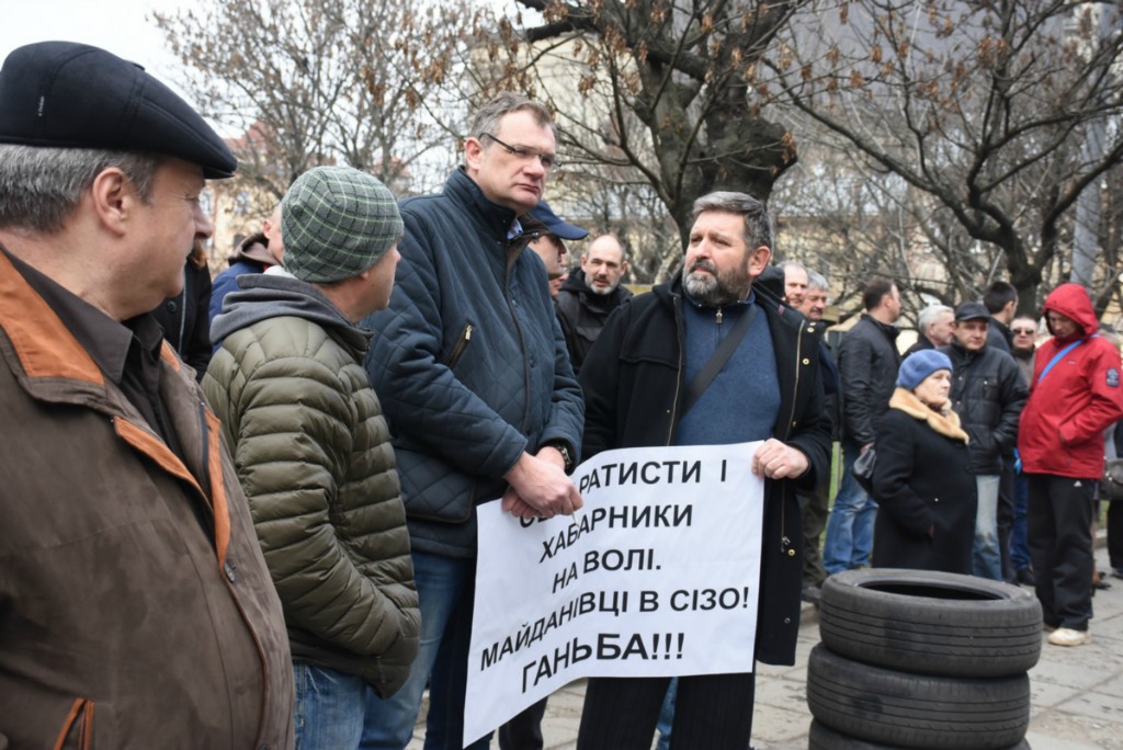 Вже традиційно на вулиці і в залі суду підтримати Андрій Федоренка прийшли колеги з Комітету підприємців Львівщини. Навпроти суду КПЛівці розгорнули транспоранти, принесли шини та увімкнули патріотичну музику, аби нагадати судовій гілці влади про старі «граблі» попередників. Це вже третій їхній пікет на підтримку колеги. Цього разу є привід для радощів.